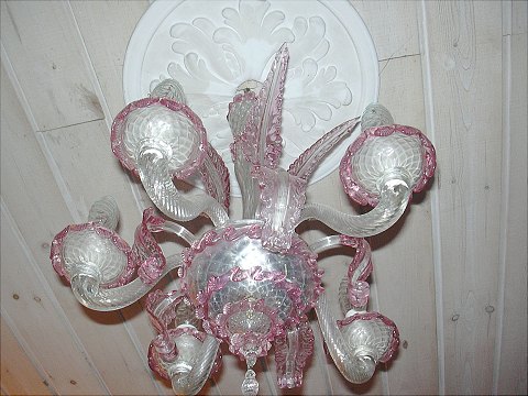 Flot Italiensk Veneziansk lysekrone af glas , 1900-tallets slutning Fem svungne lysarme. Mål H. 55 cm. Ø ca.40 cm.