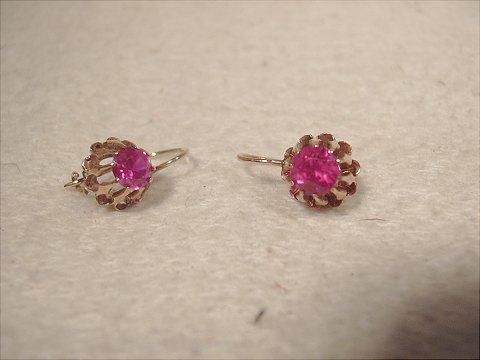 Ørestik af 14 k. guld med stor flot rubin