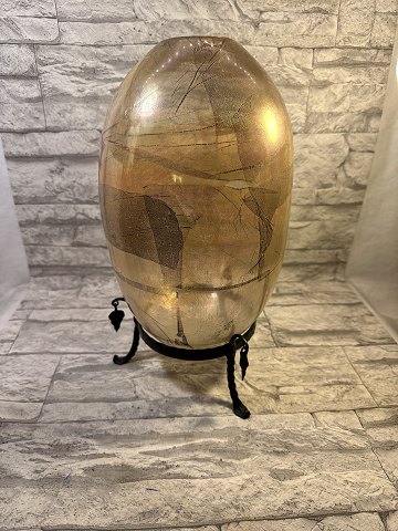 Rikke Stenholt Vase of hand-blown golden glass with seal. Artist Rikke Stenholt. Vase of mouth-blown golden glass with silver H 32 cm, W 10 cm, glass art by Rikke Stenholt, glass blower.