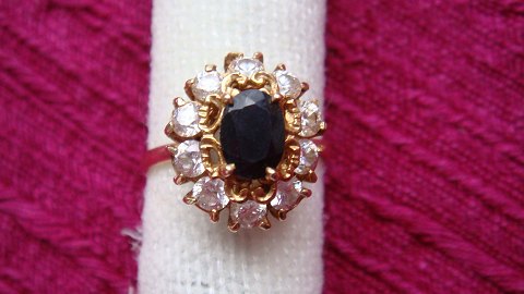 Guld med Zirkoner og stor oval Safir i midten ca 0,75 ct