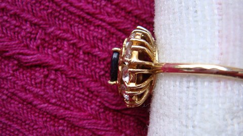 Guld med Zirkoner og stor oval Safir i midten ca 0,75 ct