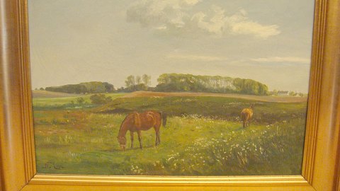 Maleri Niels Christiansen Heste på mark H. 36 cm. B.49 cm.