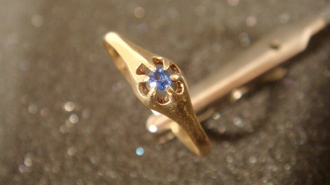 Solitaire Ring 14 Karat Gold 585 mit blauen Saphiren VERKAUFT