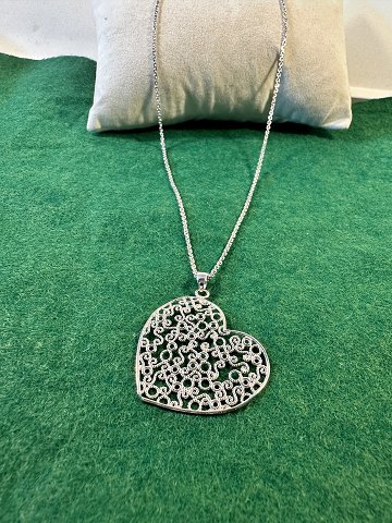 Stort hjerte , halskæde samt med hjerte vedhænge i sterling sølv 925 s