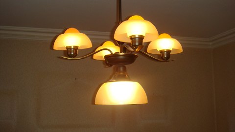Lysekrone anno 1945 med glasskærme