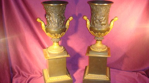 Franske Empire Kamin Stager patineret og forgyldt Bronce anno 1820-50