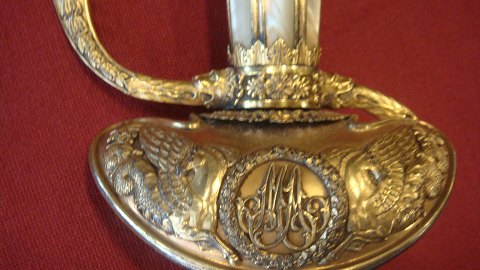 Antique French official's sword embedded in gold and pearl filled clip and dekoretet in blade