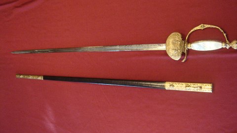Beautiful Danish official's saber clip in gold and pearl filled clip and dekoretet in blade Sold