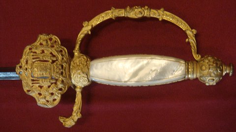 Beautiful Danish official's sword embedded in gold and pearl filled clip and dekoretet in blade sold