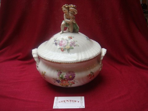 Saksisk Blomst Terrin med puti på låg Royal Copenhagen KGL 1800 tallet