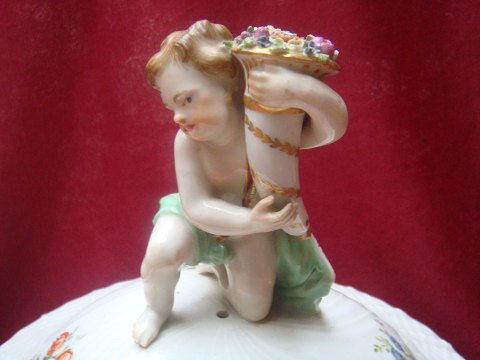 Saksisk Blomst Terrin med puti på låg Royal Copenhagen KGL 1800 tallet