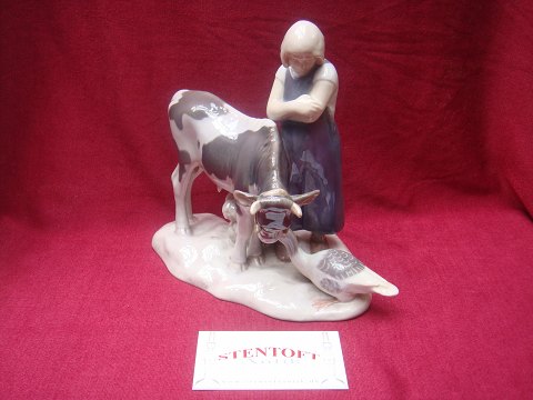 Figur pige med tyrkalv og gås B&G nr 2272 Bing & Grøndahl