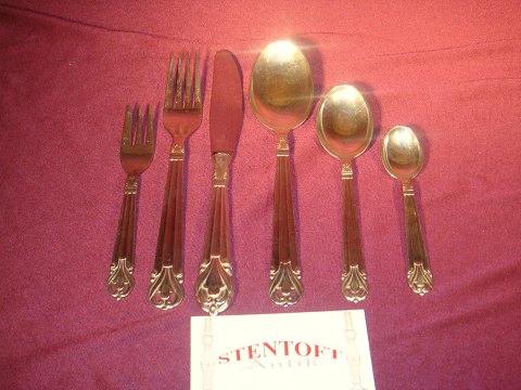 12 middags knive, 12 middags gaffel, 12 Suppeskke, 12 Decertske, 12 kaffeske, 1 sovseske ,1 kompotske, 1 sovseske, 1 kompotske
