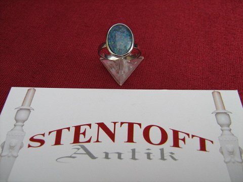 Guldring hvidguld 14k 585 med oval carbonslebet opal