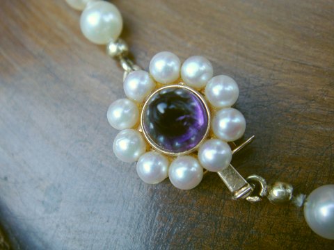 String of Pearls salt water whit 14k 585 gold and amatyst L: 41,5 cm