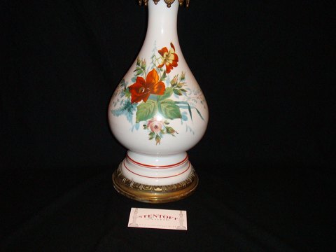 paraffin Lamp in opalineglass whit Bronce painting whit flowers H: 82 cm