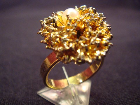 Flora Danica Persille Ring Forgyldt Sølv 925s med Ferskvands perle Solgt