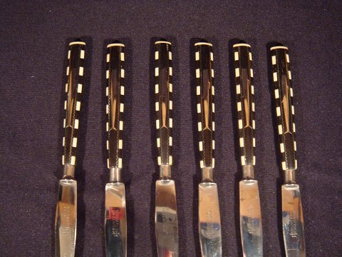 skaft indlagt hvaltand og sølv i ibenholdt samt sølv hval centreret i midt af skaftet, utrolige flotte og velholdte knive
