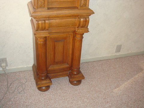 In Eiche Standuhr mit Messingzifferblatt Jahr 1908 Höhe: 225 cm, D: 29 cm Breite: 50 cm an der breitesten Stelle.