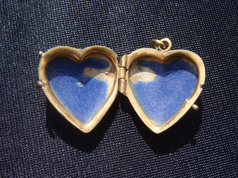 Hjerte medaljon med emalje og perle