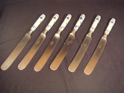 Musselmalet 6 stk Middagsknive med Raavad klinge Længde 26 cm Kgl Royal Copenhagen