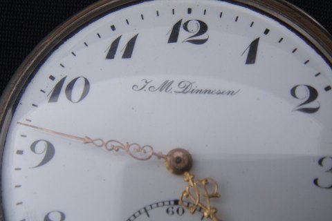 Lommeur i sølv (J.M. Dinesen) med guld viser flot ur og i fin stand SOLGT