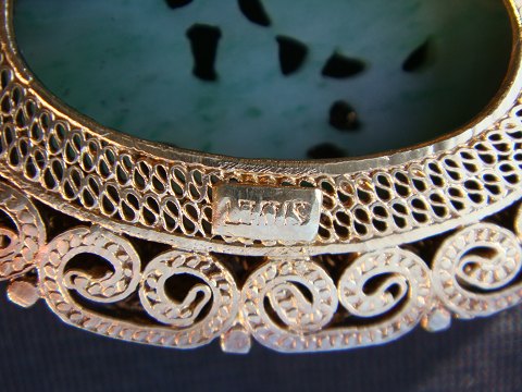 Broche Sølv filigran som er forgyldt Med udskåret Jade Solgt