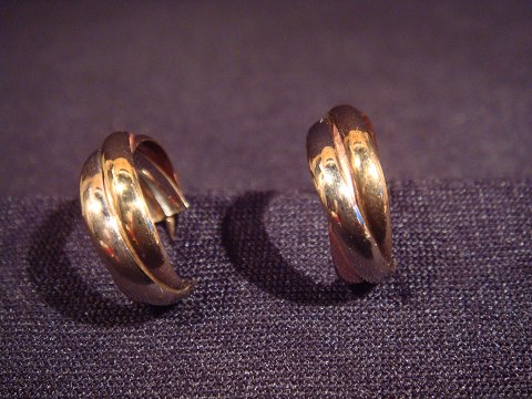 Ørestik form som tre guld tråde Rød - hvid og alm guld Guld 8k 333 Solgt
