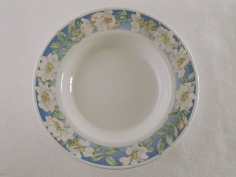 Royal Copenhagen, Hvid vild rose. Dyb frokosttallerken. Nr. 621. Diameter 22 cm. Pris: SOLGT