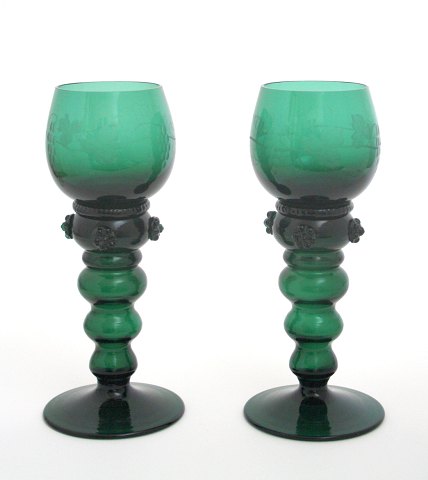 Grønne rømerglas med rosetter, vinranke slibninger