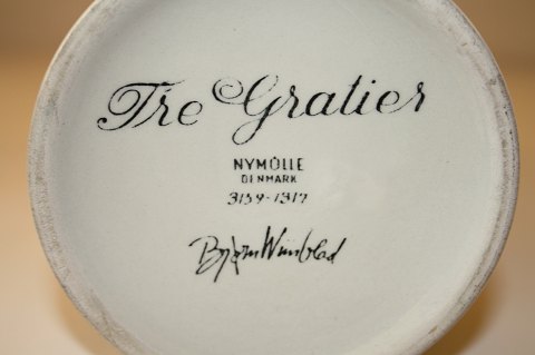 Bjørn Wiinblad, Nymølle. Vase med motiv Tre Gratier. Højde 28,3 cm. Diameter 9,2 cm. Form nr. 3159-1317. solgt