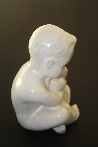 Michael Andersen keramik, Bornholm. Hvid glasur. Dreng med lam i favnen. Højde 15 cm. Pris: SOLGT