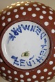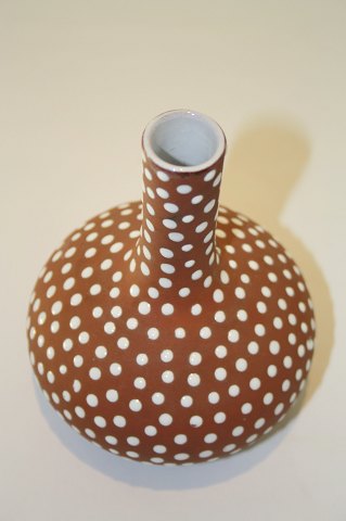 Vase fra Zeuthen keramik, Danmark. Vasen har hvide glasur bomber/prikker. Højde 15 cm. Solgt.