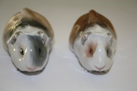 Bing & Grøndahl Marsvin nr. 1558. Længde 10 cm. Sjælden. Forreste marsvin er I. sortering. Pris: SOLGT Bagerste marsvin er II. sortering med meget lille afslag på tå Pris: SOLGT