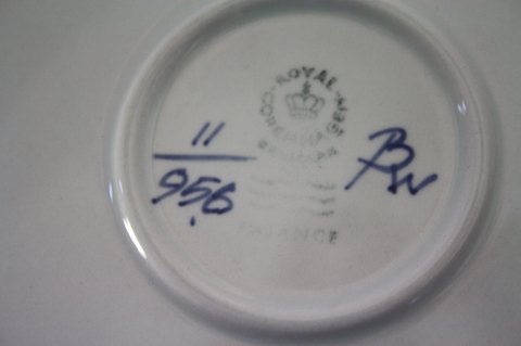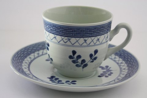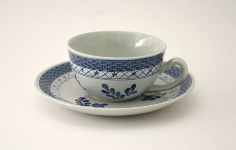Royal Copenhagen, Tranquebar lyseblå fajance med mørkeblå tulipan og flettet bort designet af Christian Joachim. Produceret fra 1914 til 1969 på Aluminia derefter videreført hos Royal Copenhagen.