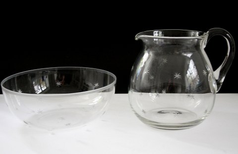 Søblå glasskål med hank, højde uden hank, 8 cm. diameter 10 cm.