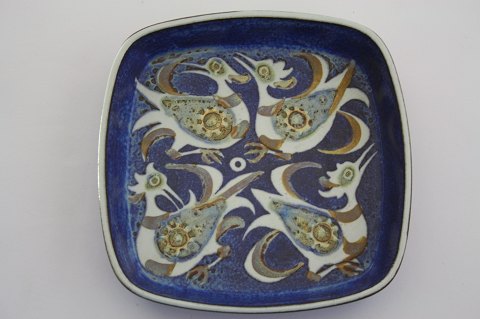 Royal Copenhagen, Kunstfajance, Baca, Firkantet fad med fugle. Designet af Niels Thorsson. Dek. nr. 708/2883. 16,5 x 16,5 cm. Højde 3,3 cm. I. sortering. Fin og hel stand. Pris: SOLGT