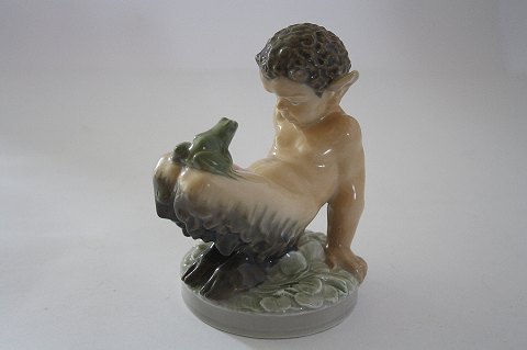 Faun med frø, dek. nr. 1713, højde 12 cm. 1. sortering pris 1900 kr. fin og hel stand, Royal Copenhagen. solgt