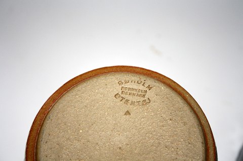 Søholm stentøj, Bornholm. Brun vase. Højde 13,5 cm. Diameter 9,5 cm. Pris: solgt Blå vase. Højde 13,7 cm. Diameter 10 cm. Pris: solgt