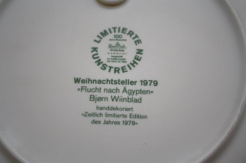 Weihnachsteller 1979, Bjørn Wiinblad, Rosenthal. Flugten til Ægypten Diameter 29 cm. Pris 450 kr.