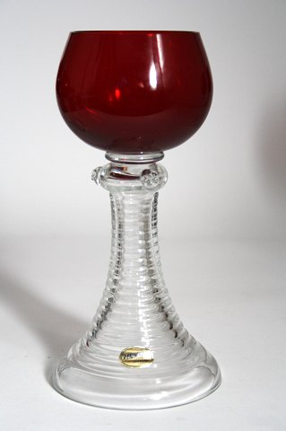 6 stk. Rømer vinglas fra Reijmyre glasværk med flot vinrød kumme, det ene glas har en lysere rød farve. Højde 17,2-17,6 cm. Pris: SOLGT