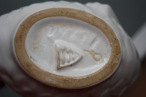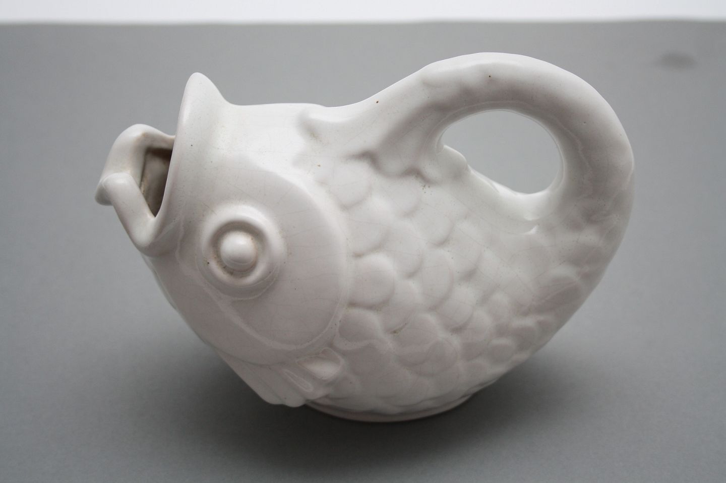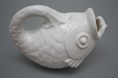 Michael Andersen, Bornholm hvidglaseret fisk. Højde 14 cm. Længde 19 cm. Pris: SOLGT