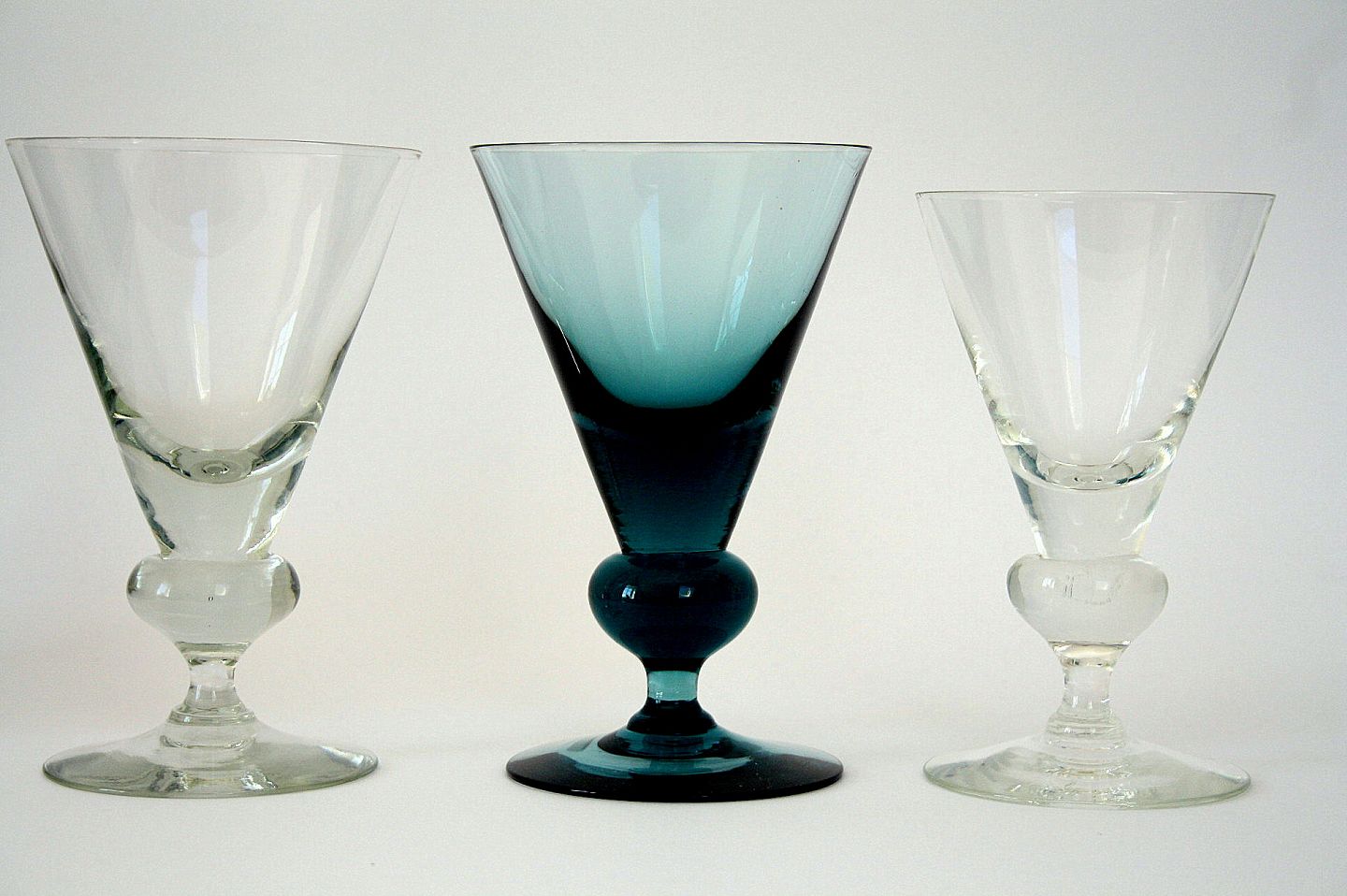 Herredag glas, Holmegaard glasværk, designet af Orla Juul Nielsen 1925, han tegnede i alt 6 servicer til den kgl. porcelænsfabrik, af disse fik Herredag længst levetid, er i prislisten 1961: