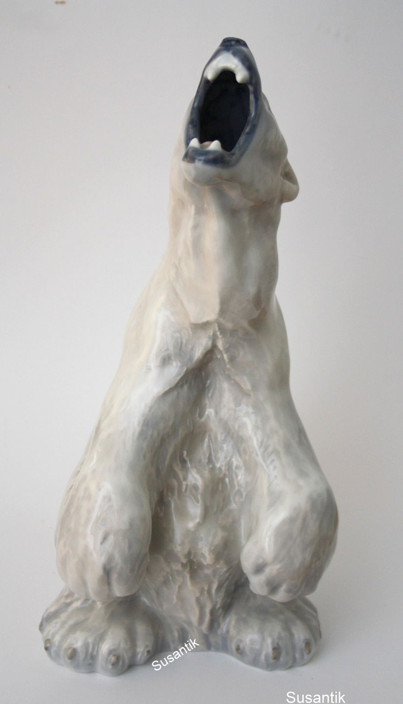 Royal Copenhagen, Brølende, siddende isbjørn. Nr. 502. Formgivet af C.F. Liisberg fra 1894 og frem. Mål: 31,8 x 14,5 x 8,5 cm. I. sortering