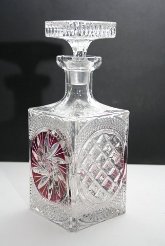Bøhmisk whiskykaraffel. Højde 25 cm. Bredde 10 x 10 cm. Flot stand. SOLGT