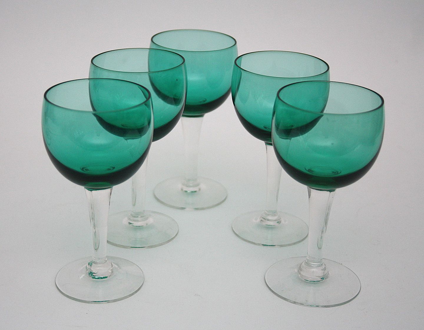 Holmegaard, små grønne hvidvinglas á la Nyhavn. Højde 11,5 cm. Diameter 5,5 cm. Solgt