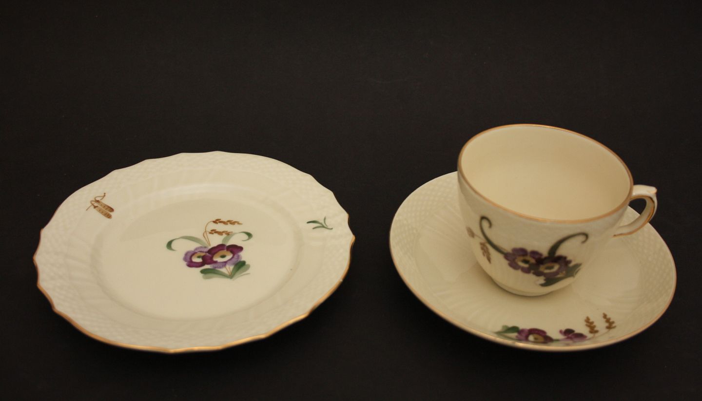 Royal Copenhagen, Aurikel. Creme farvet, svejfet porcelæn med Aurikel blomster og guldkant.