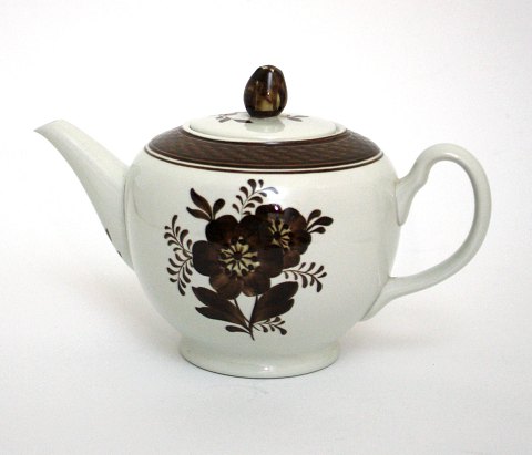 Bavaria, Tirschenreuth, Engblomme, dekoreret på Antoinette eller Marie Antoinette cremefarvet stel med gule blomster og guldkanter. Importeret af Norden og senere Bucka og Nissen. Stellet er dekoreret i Danmark. Flødekande. Højde 11 cm. SOLGT