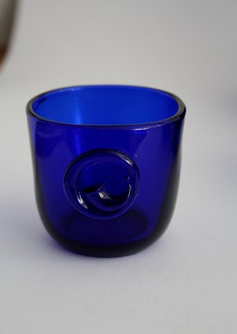 Bæger koboltblå med horn motiv. Højde 5,5 cm. Pris: 50 kr. stk. Lager: 10