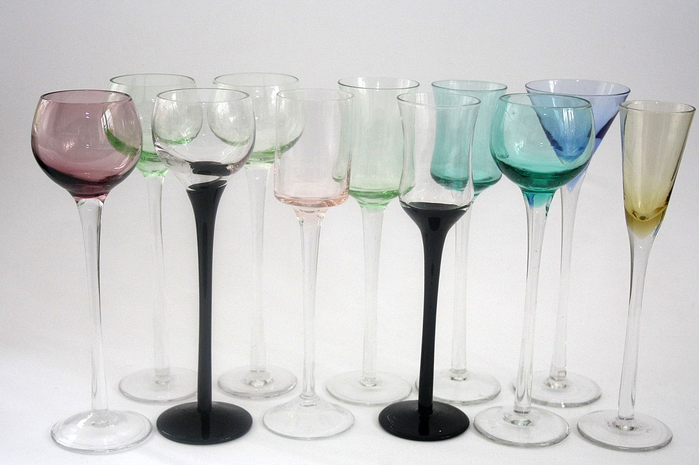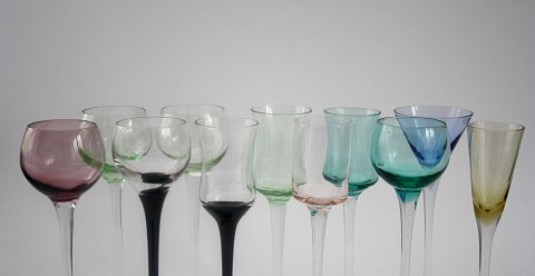 Høje farvede glas, højde ca. 18 cm. Pris: SOLGT